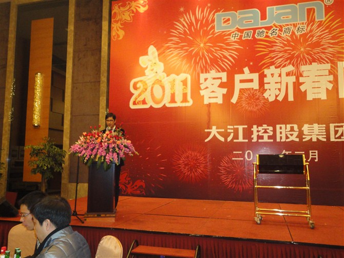 集團(tuán)董事長陳耀哲致新春賀詞,陳董代表集團(tuán)董事會(huì)和全體員工向歷來支持和關(guān)心大江的各界朋友、銷售分公司表示衷心的感謝!陳董指出:在過去的一年,大江控股集團(tuán)碩果累累:非晶變壓器項(xiàng)目順利上馬,被評(píng)為溫州市工業(yè)面上科技項(xiàng)目;集團(tuán)加強(qiáng)科技研發(fā)和設(shè)備投入,技術(shù)中心被認(rèn)定為市級(jí)技術(shù)研發(fā)中心;集團(tuán)生產(chǎn)規(guī)模逐步擴(kuò)大,樂清經(jīng)濟(jì)開發(fā)區(qū)3萬平方米新廠房投入使用;在2010年9月,集團(tuán)全盤收購世界500強(qiáng)企業(yè)法國泰樂瑪公司;陳董強(qiáng)調(diào):我們要搶抓機(jī)遇、深入市場、迎難而上,為爭一流品牌奠定堅(jiān)實(shí)的基礎(chǔ),發(fā)展是我們永恒的主題,集團(tuán)上下要精誠團(tuán)結(jié)、集思廣益、開拓進(jìn)取、創(chuàng)新工作,為開創(chuàng)大江新局面而努力奮斗!